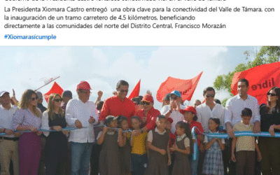 Gobierno de la Presidenta Castro fortalece conectividad vial en el Valle de Támara La Presidenta Xiomara Castro entregó una obra clave para la conectividad del Valle de Támara, con la inauguración de un tramo carretero de 4.5 kilómetros, beneficiando directamente a las comunidades del norte del Distrito Central, Francisco Morazán #Xiomarasícumple