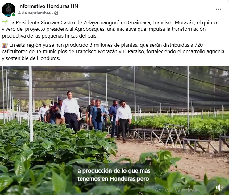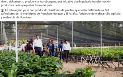 La Presidenta Xiomara Castro de Zelaya inauguró en Guaimaca, Francisco Morazán, el quinto vivero del proyecto presidencial Agrobosques, una iniciativa que impulsa la transformación productiva de las pequeñas fincas del país. En esta región ya se han producido 3 millones de plantas, que serán distribuidas a 720 caficultores de 15 municipios de Francisco Morazán y…
