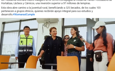 La Presidenta Xiomara Castro inauguró en el SCITA-Comayagua la moderna Planta Procesadora de Hortalizas, Lácteos y Cárnicos, una inversión superior a 97 millones de lempiras. Esta obra abre camino a la juventud rural, beneficiando a 325 becados, de los cuales 103 pertenecen a grupos étnicos, quienes recibirán apoyo integral para sus estudios y desarrollo.#XiomarasíCumple