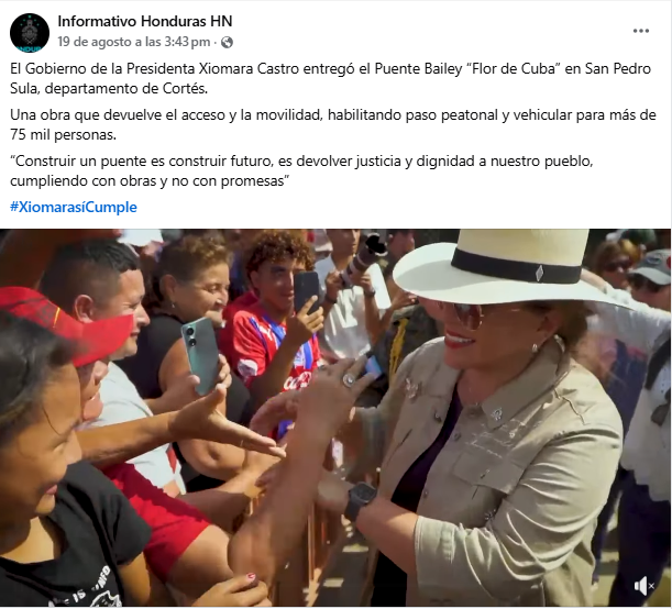 • El Gobierno de la Presidenta Xiomara Castro entregó el Puente Bailey