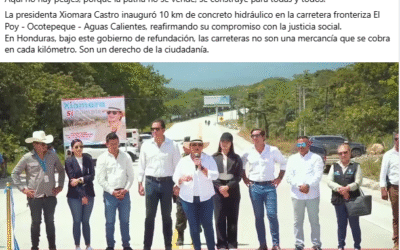 Aquí no hay peajes, porque la patria no se vende, se construye para todas y todos. La presidenta Xiomara Castro inauguró 10 km de concreto hidráulico en la carretera fronteriza El Poy – Ocotepeque – Aguas Calientes, reafirmando su compromiso con la justicia social. En Honduras, bajo este gobierno de refundación, las carreteras no son…